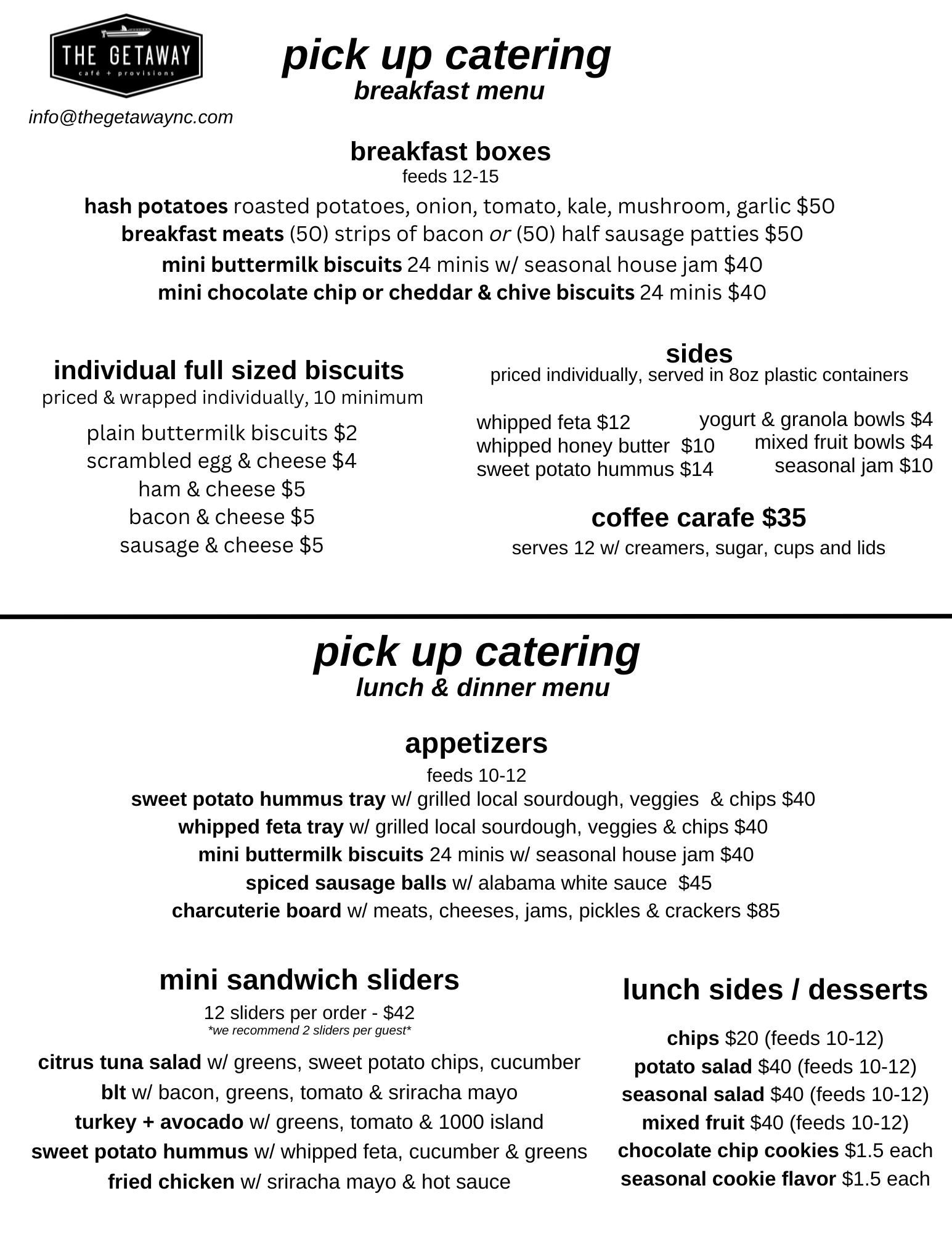for pick up catering inquires, or fill out the form below.